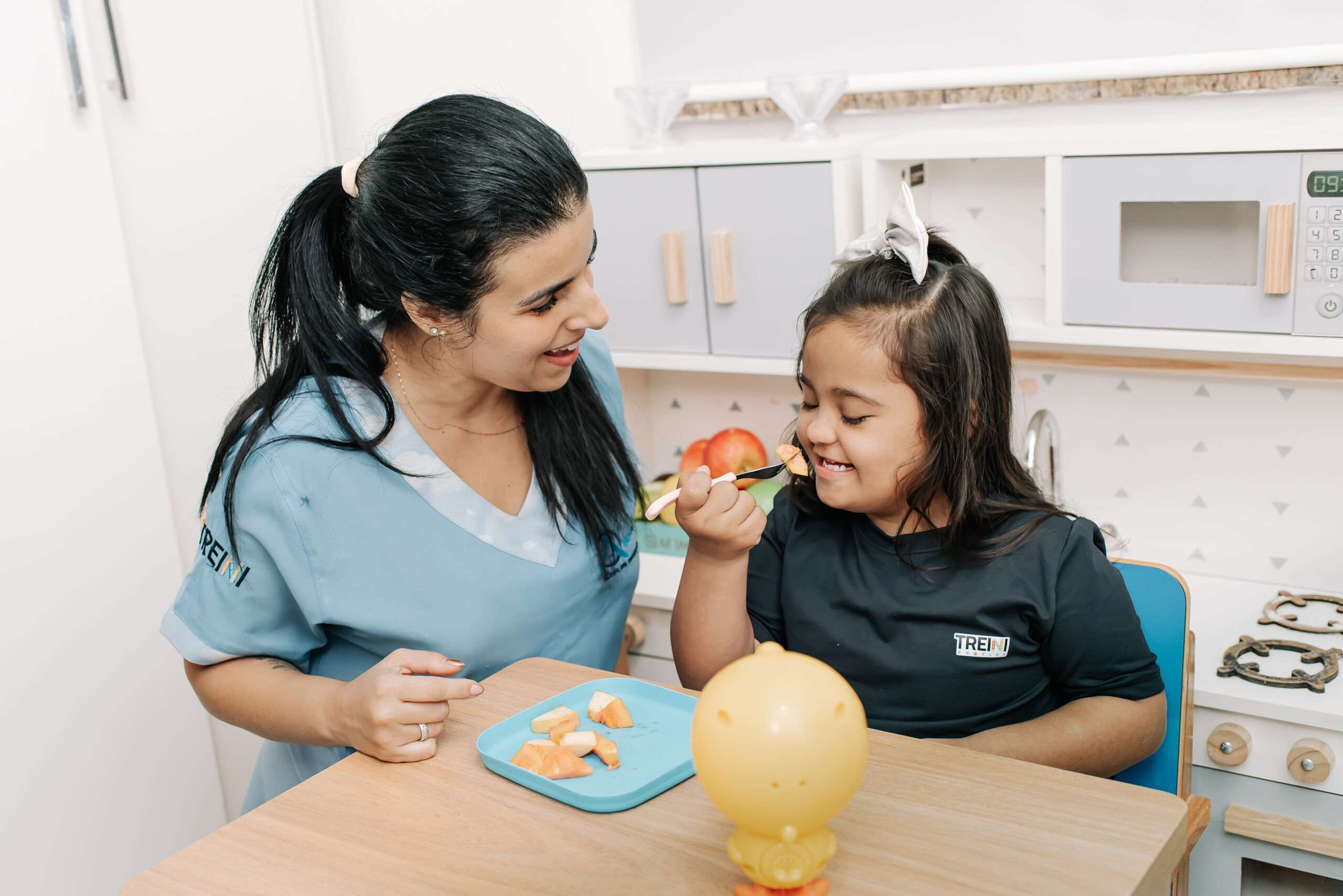 Estimula as habilidades de comunicação, linguagem, fala e deglutição. É essencial para que a criança consiga se expressar, interagir socialmente e se alimentar de forma segura, respeitando o seu ritmo e potencial.